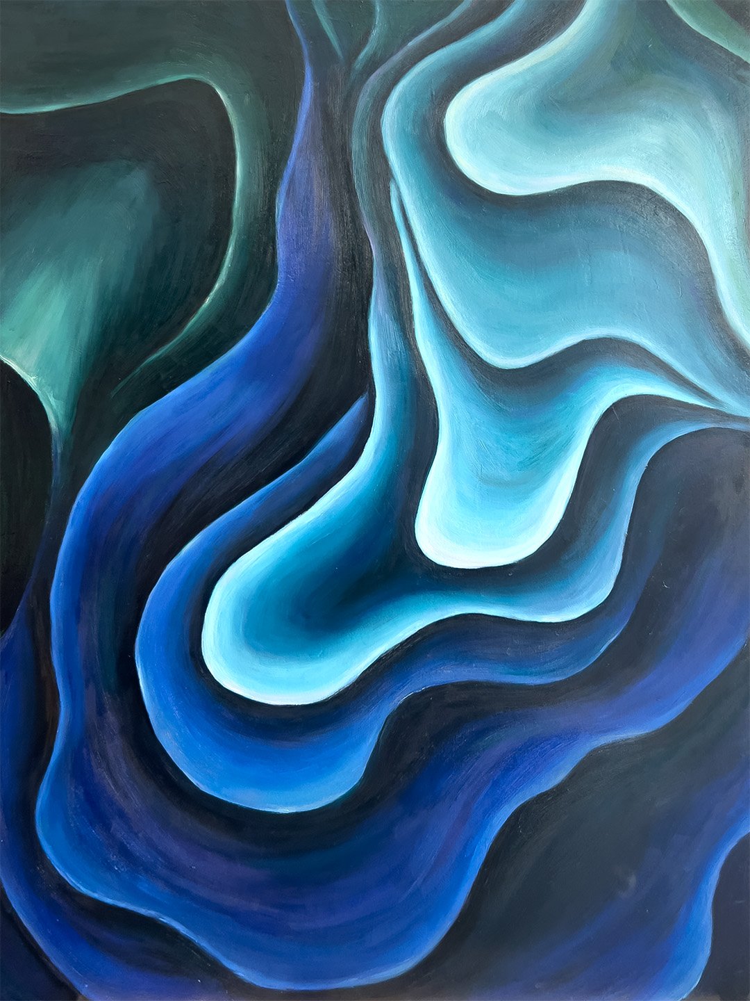 This painting began with a longing for the sea. Living far from the ocean, I found myself missing not just its presence, but its rhythm—its way of moving through time and emotion.